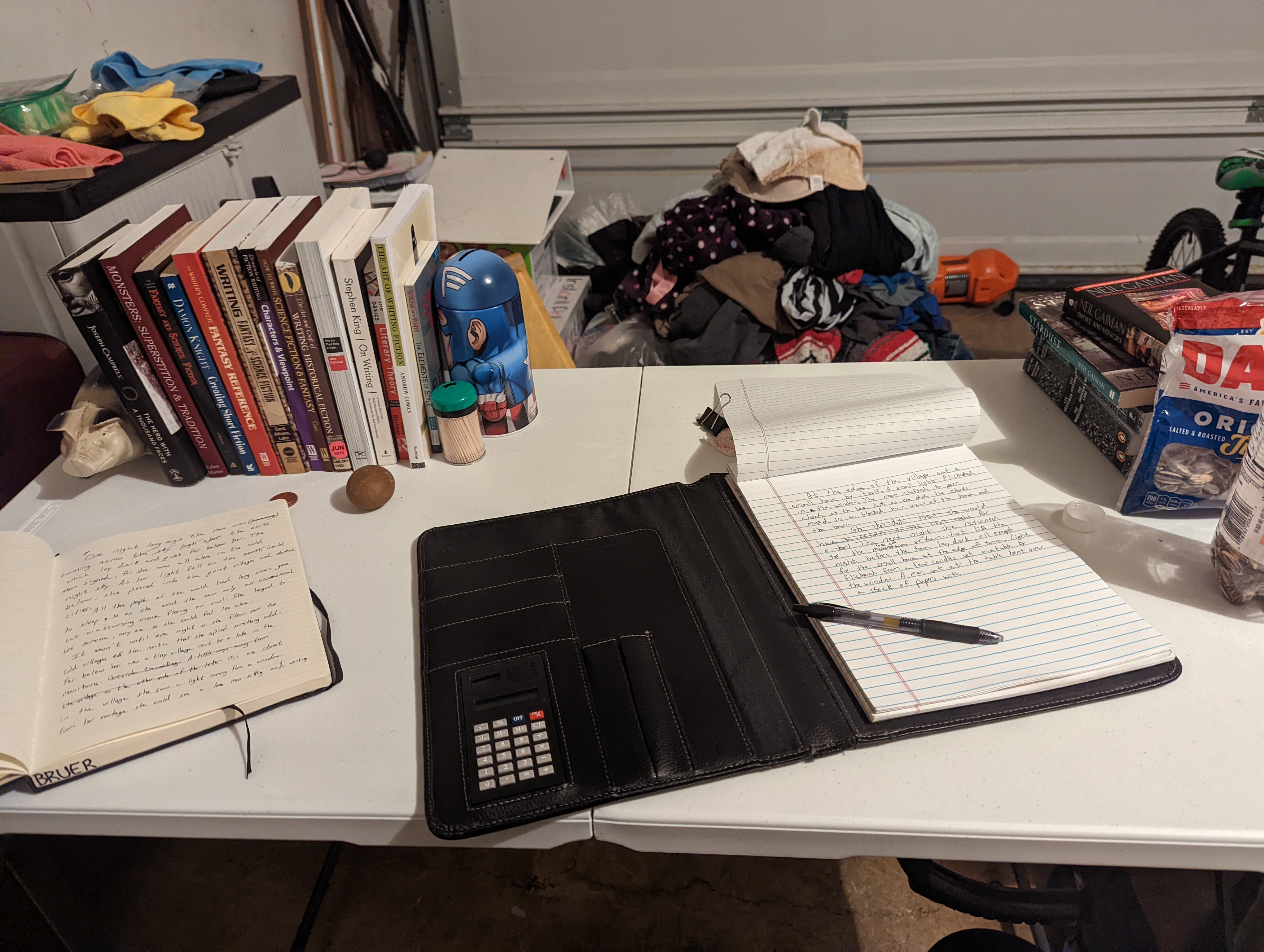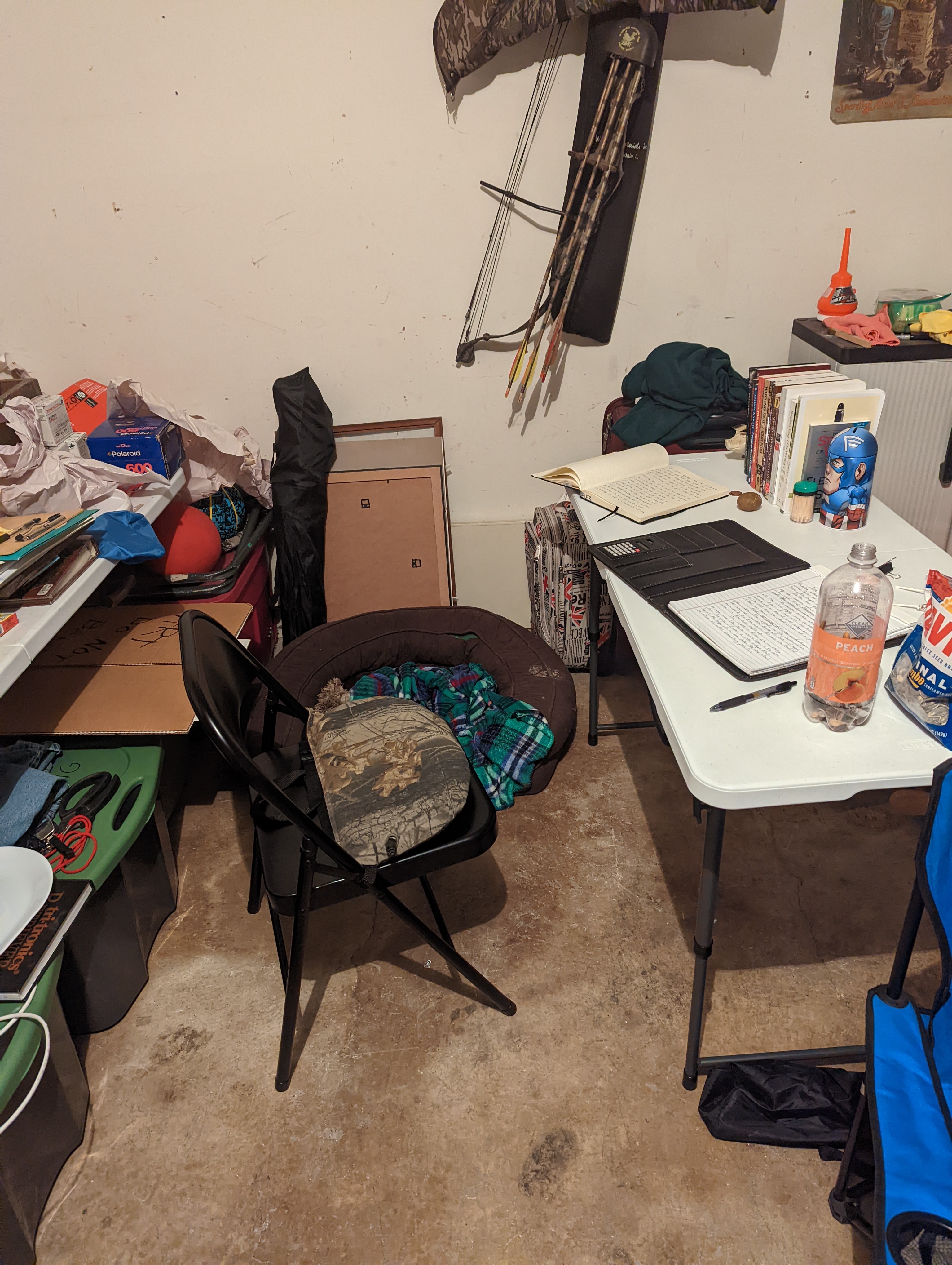 I did it. I finally made myself a space to write. For years now I’ve had my armchair be my space to write and to do well, everything else I do. I game there, I read there, I watch television there. I eat my dinner there. But my armchair is in the middle of our living room and not only is it in the center of activity in the house it also wasn’t a designated place where I go to work. So sitting in my recliner never enforced the idea that I am here to work. I usually would think of a story and then jot down the idea and get back to gaming. Setting up an actual place to be alone was difficult in our tiny house, but I did it. Over the holiday I spent a few days cleaning out the garage which was previously impassable and set a table and chair to one side and I carved out a nice nook for myself. I spent most of Saturday and Sunday just sitting in my new writing space simply enjoying the feeling that having a place for myself gave to me. The place emanates a power that was previously lacking in the armchair in the middle of the house. The space demands work and punishes idleness. I should have done this years ago